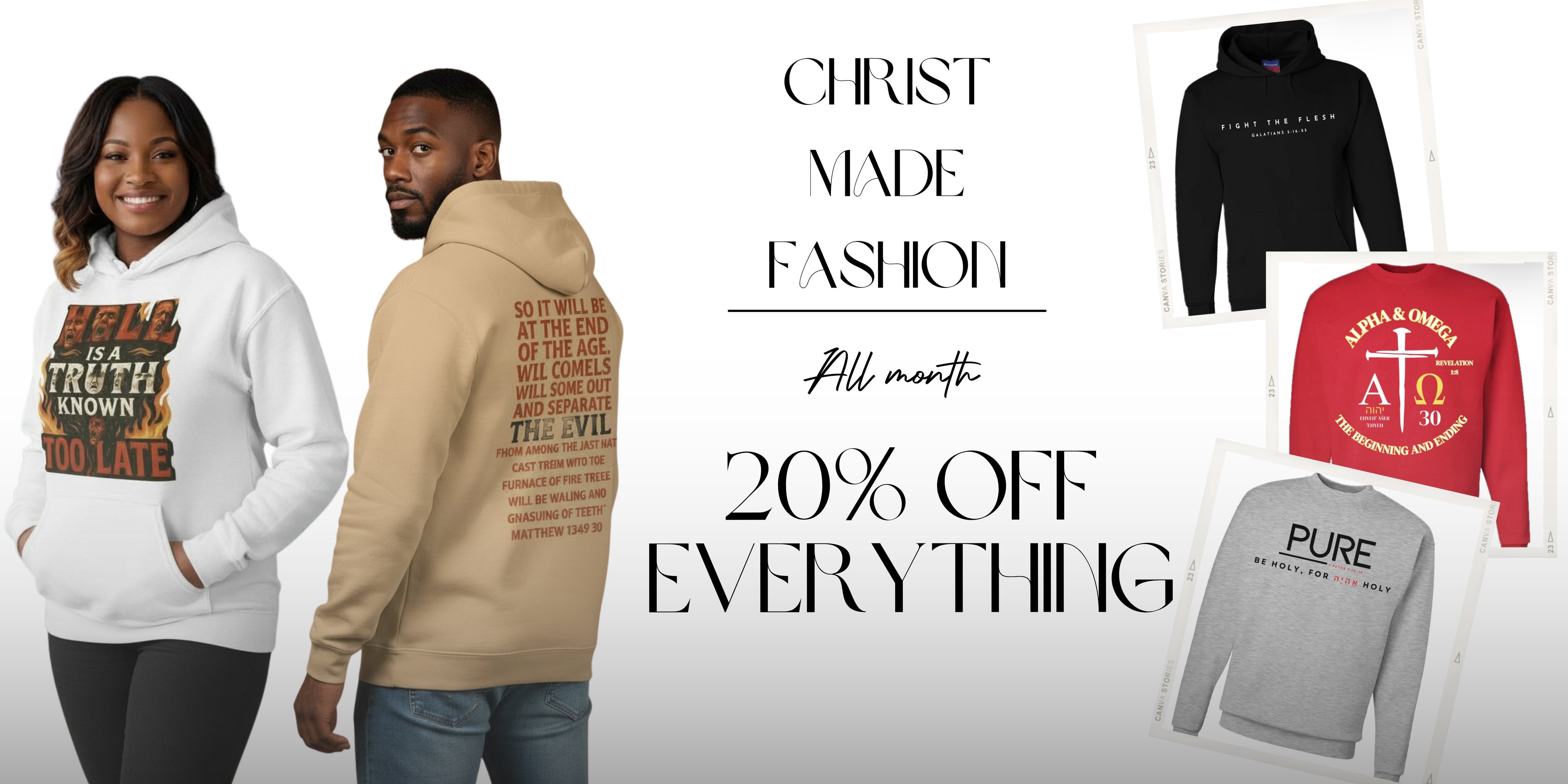 Welcome to Uriel’s Fashion Co, where Christ Made Fashion keeps you set apart. We curate a meticulously crafted collection that reflects the image and standards of Jesus Christ. Our unique styles embraces diversity, and empowers individuals to express the word of God through Holy apparel. Discover garments that effortlessly blend quality, comfort, and trendsetting designs, allowing you to make a bold statement of your identity in Christ with every step you take.